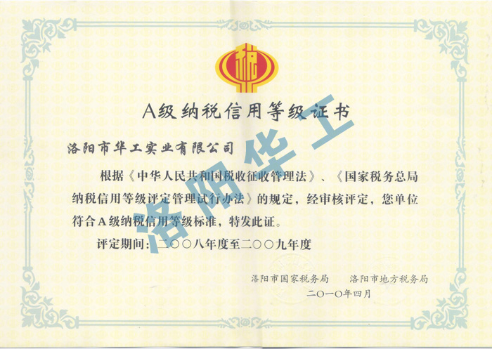 A級納稅信用等級證書(shū)